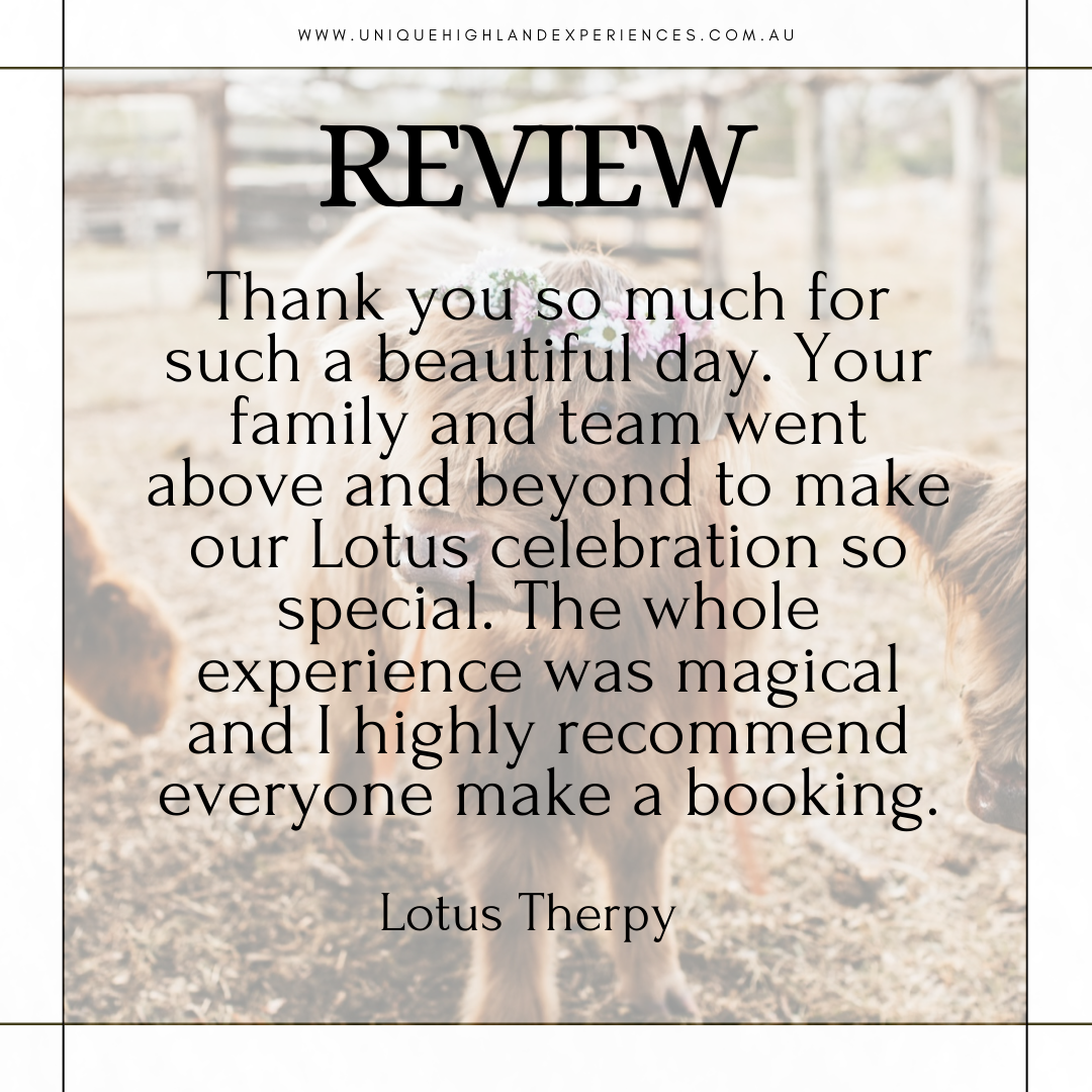 The stunning countryside setting, complete with adorable Highland cows, added a unique and calming touch to the experience. The charcuterie board was very generous and catered perfectly to dietary needs, including vegetarian and gluten-free options. Despite unexpected rain, the team ensured we stayed comfortable and dry, which kept the vibes high.